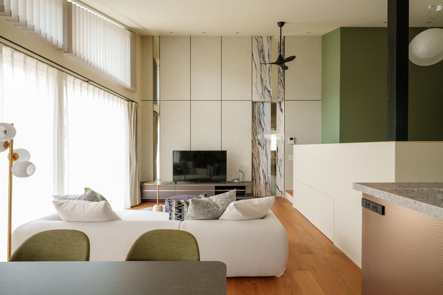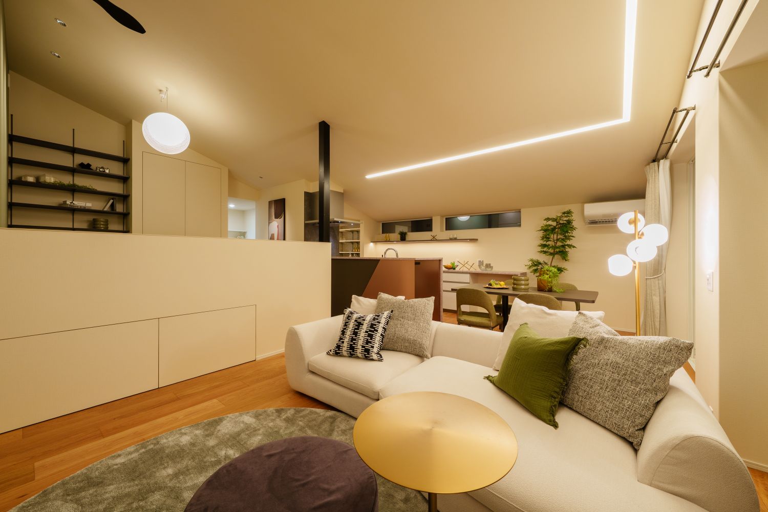 家族がそれぞれお気に入りの場所にいながら自然と視線が交差日々の暮らしが美しく重なり、人生を豊かに彩る居場所です。
